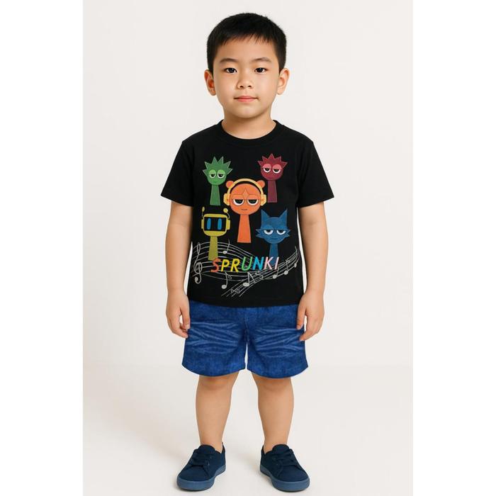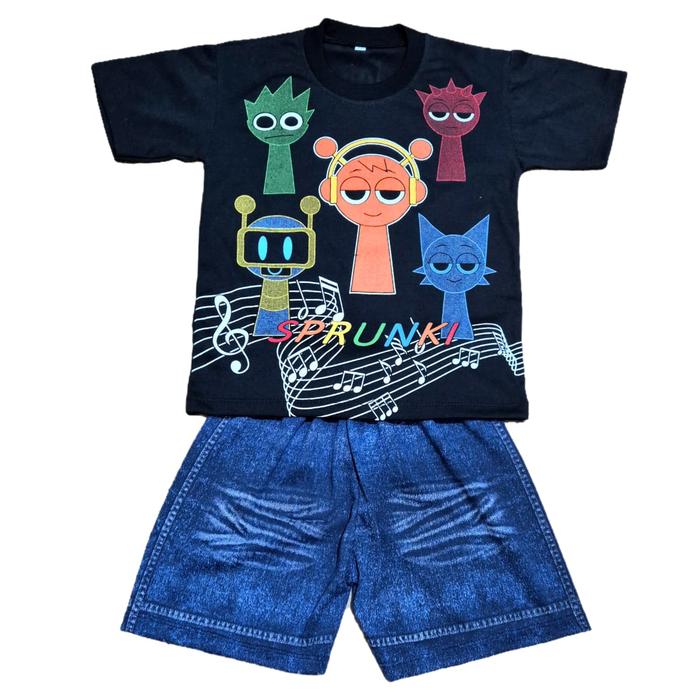 Setelan Anak Laki Laki Motif Sprunki / Baju Anak Gambar Sprunki / Setelan Anak Kekinian - Hitam M