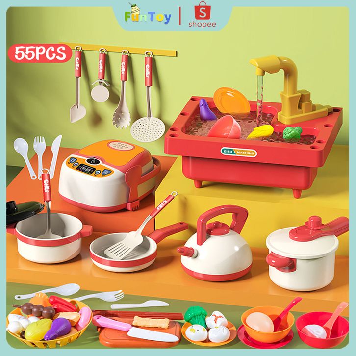 BARU FUNTOY Set mainan dapur cuci piring Mainan Dapur Anak Kitchen Set Cooking Set Mainan Anak Perempuan Air yang