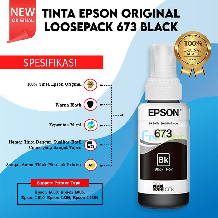 TINTA EPSON 673 T673 ORIGINAL LOOSE PACK PRINTER L800 L805 L850 L1800 - HITAM