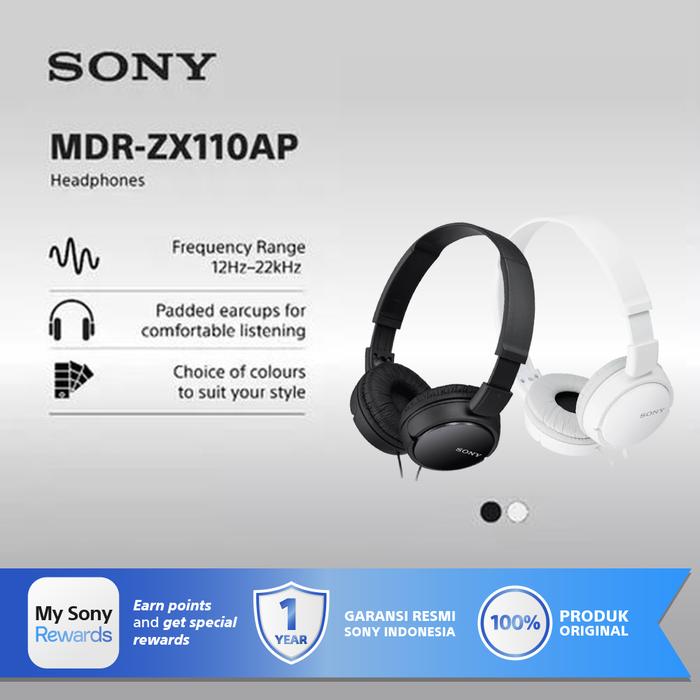 SONY MDR-ZX110AP ON EAR HEADPHONE / ZX110 / ZX-110AP / ZX 110 AP - WHITE