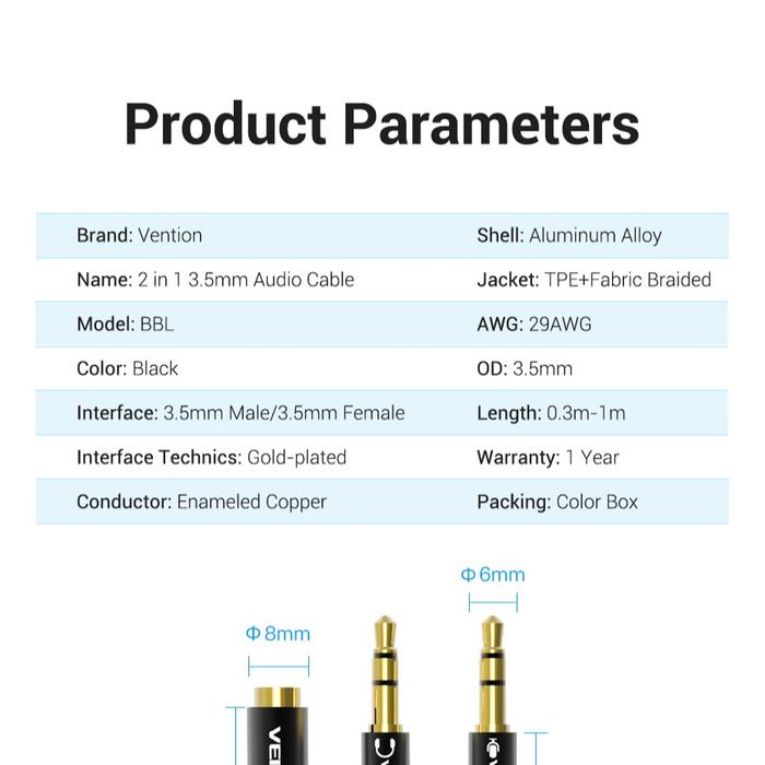 VENTION KABEL AUX AUDIO SPLITTER 3.5MM FEMALE TO 2 MALE 3.5MM - BBU, 0.3 METER