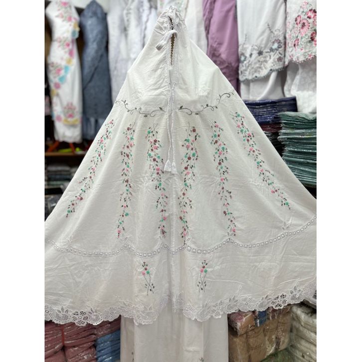 mukena bordir krancang 2 tingkat dengan sulam jurai bukittinggi padang