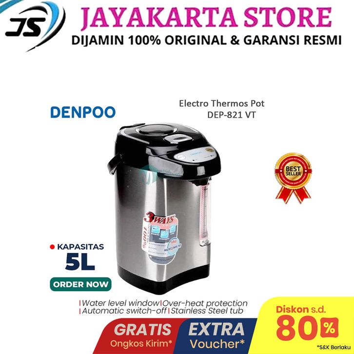 THERMOS POT LISTRIK 5 LITER DEP 858VT PEMANAS AIR .T STAINLESS STEEL AWET BER.