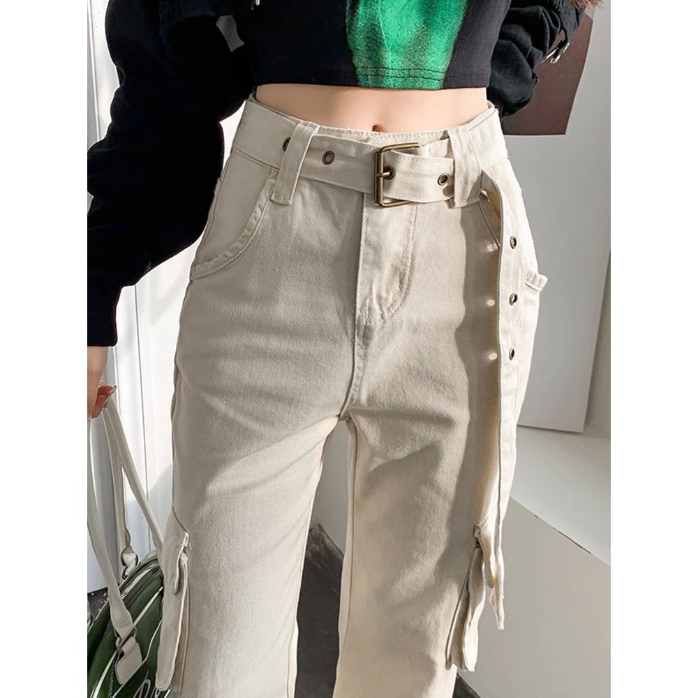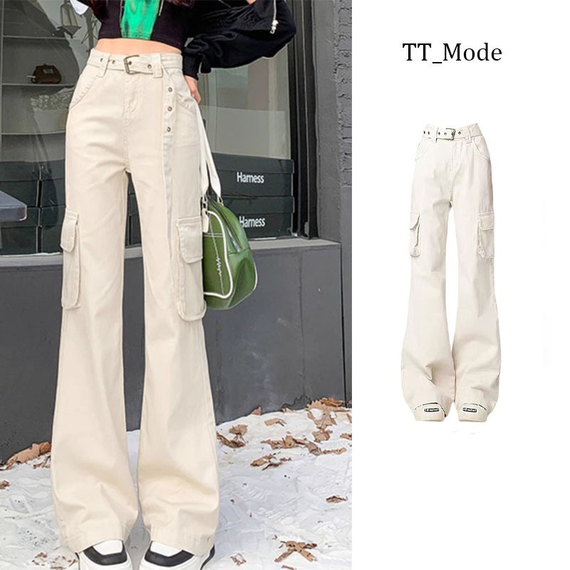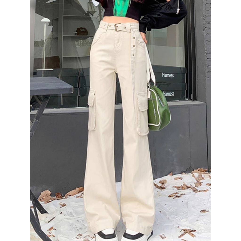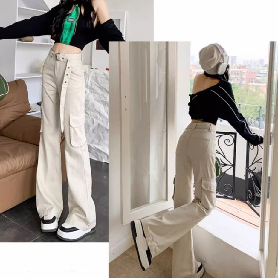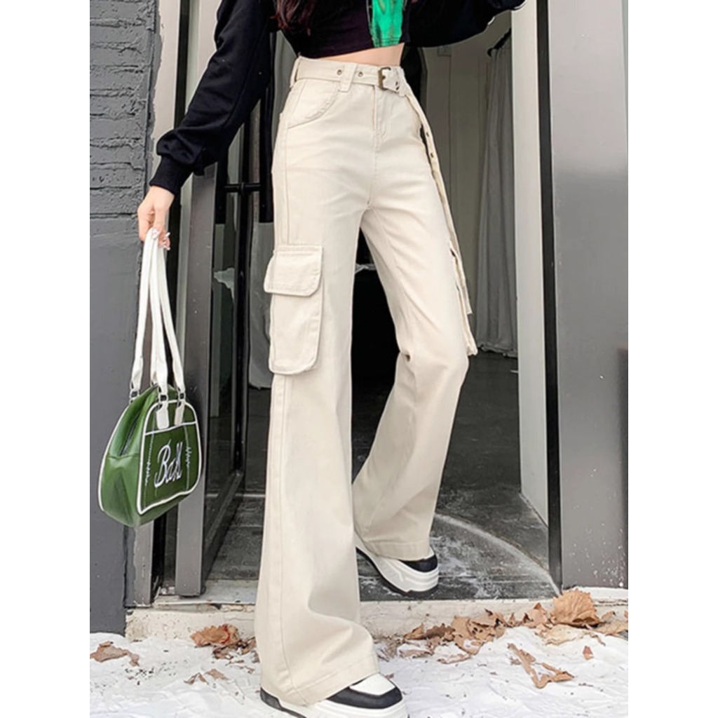 KOREAN KREM CARGO HIGHWAIST KASUAL CELANA PANJANG WANITA