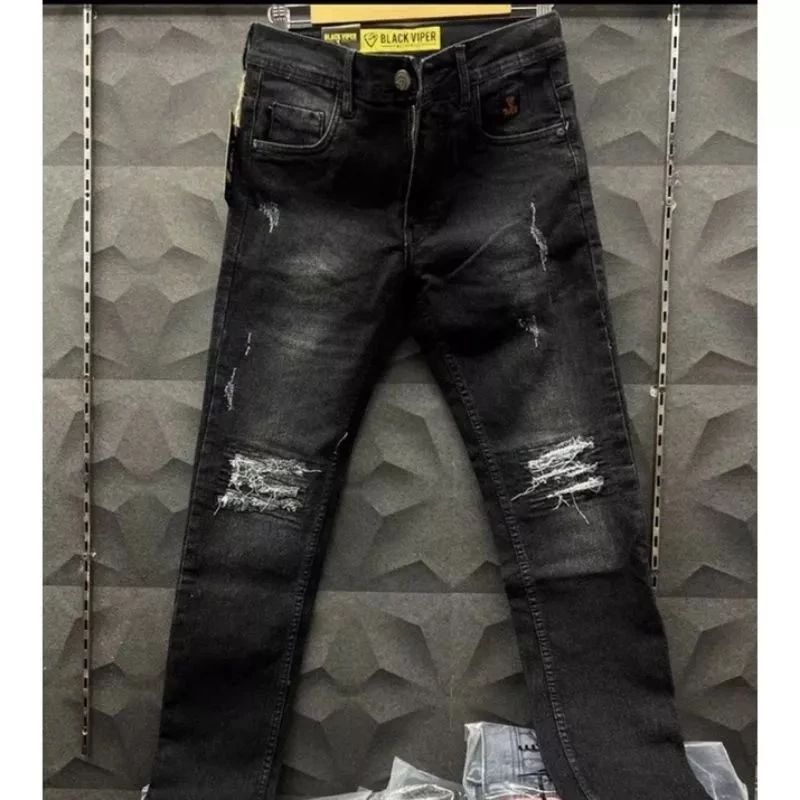 Jeans Black EDITIONS MANROCK™ DN1171 Strecth Long Pant | Celana Jeans Sobek Pria Black Viper Apparel™