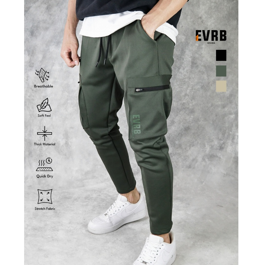 EVRB Celana Panjang Joger cargo Training pria , EVRB CARGO ZIP