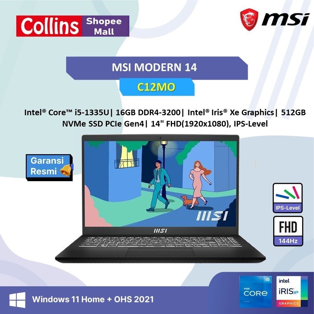 LAPTOP MSI MODERN 14 I5 1235 8GB 512GB W11+OHS 14.0FHD IPS BLIT 2Y BLK -C12MO.1287