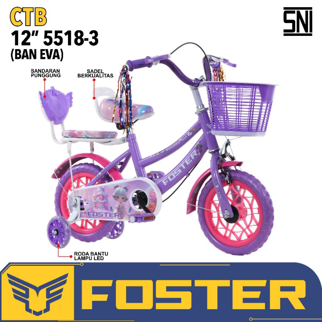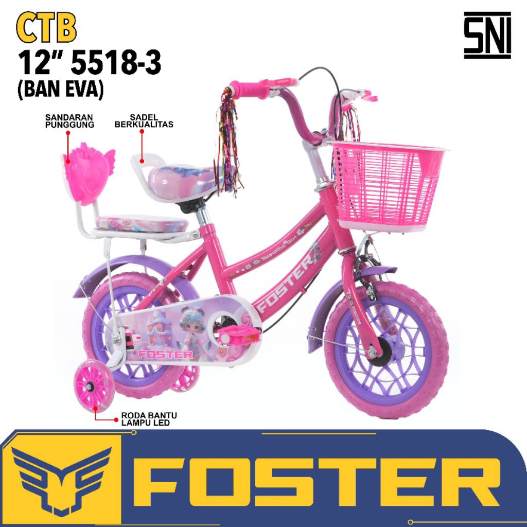 SEPEDA ANAK PEREMPUAN 12 INCH FOSTER 5518-3 BAN EVA