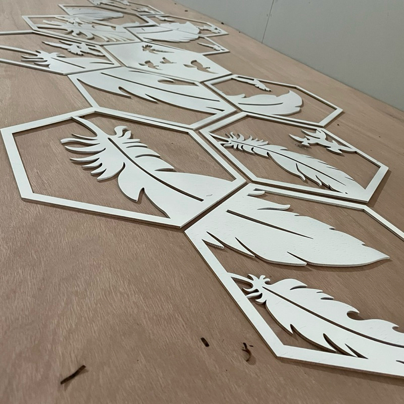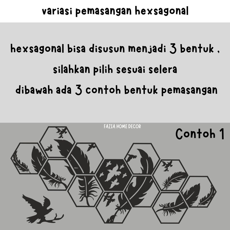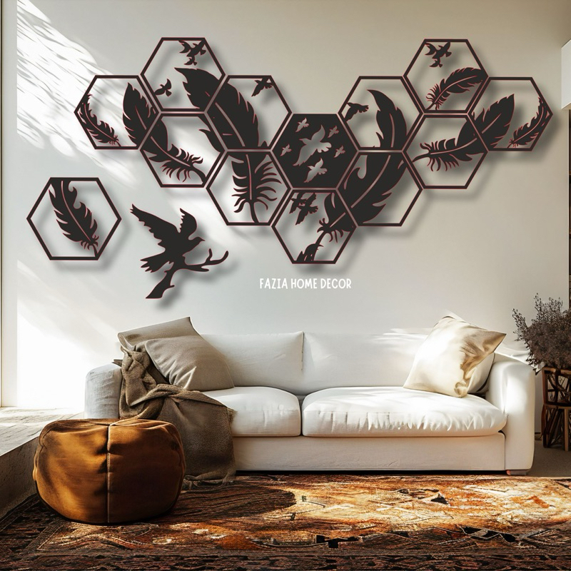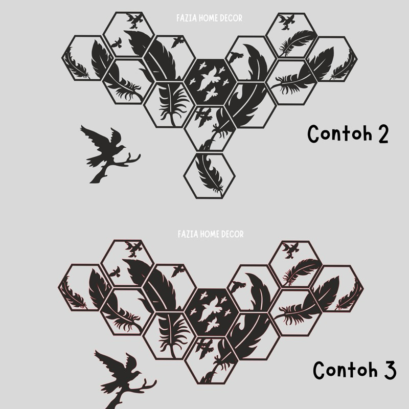 WALL DECOR HEXSAGONAL TEMA BURUNG 13 PANEL