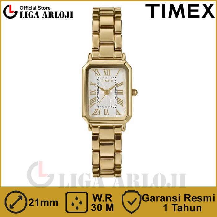 TIMEX TW2Y01200 Jam Tangan Wanita Analog Stainless Gold 21mm Original Dress Watch Tank
