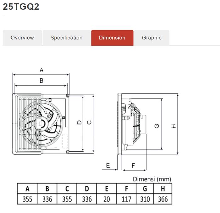 KDK CEILING EXHAUST FAN PLAFON PLAFOND 10" 25TGQ 25 TGQ - UNIT SAJA