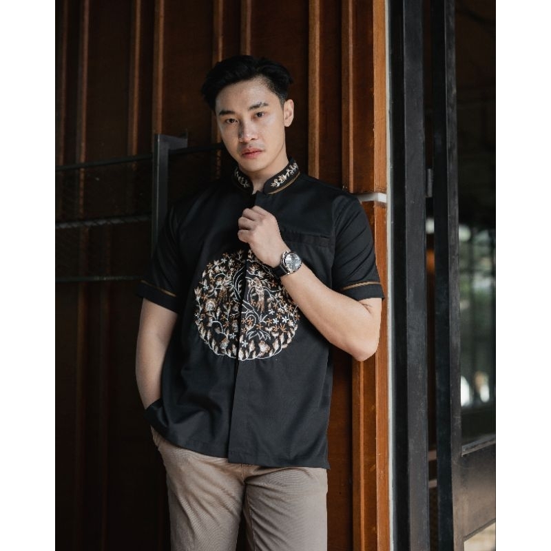 Kemeja Bordir Pria Katun Toyobo NUC.ID Hadi 06 (Hitam)