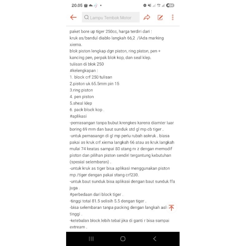 PAKET BOR UP BORUP 250 CC MERK XGP PNP CB MEGAPRO GL TIGER GLPRO GL 100 125 SEPAKET KRUK AS XIEMA BURING CRF250 KARET TENSIONER CRF STUT KAMPRAT TIGER KAMPRAT 104L ANCER CRF