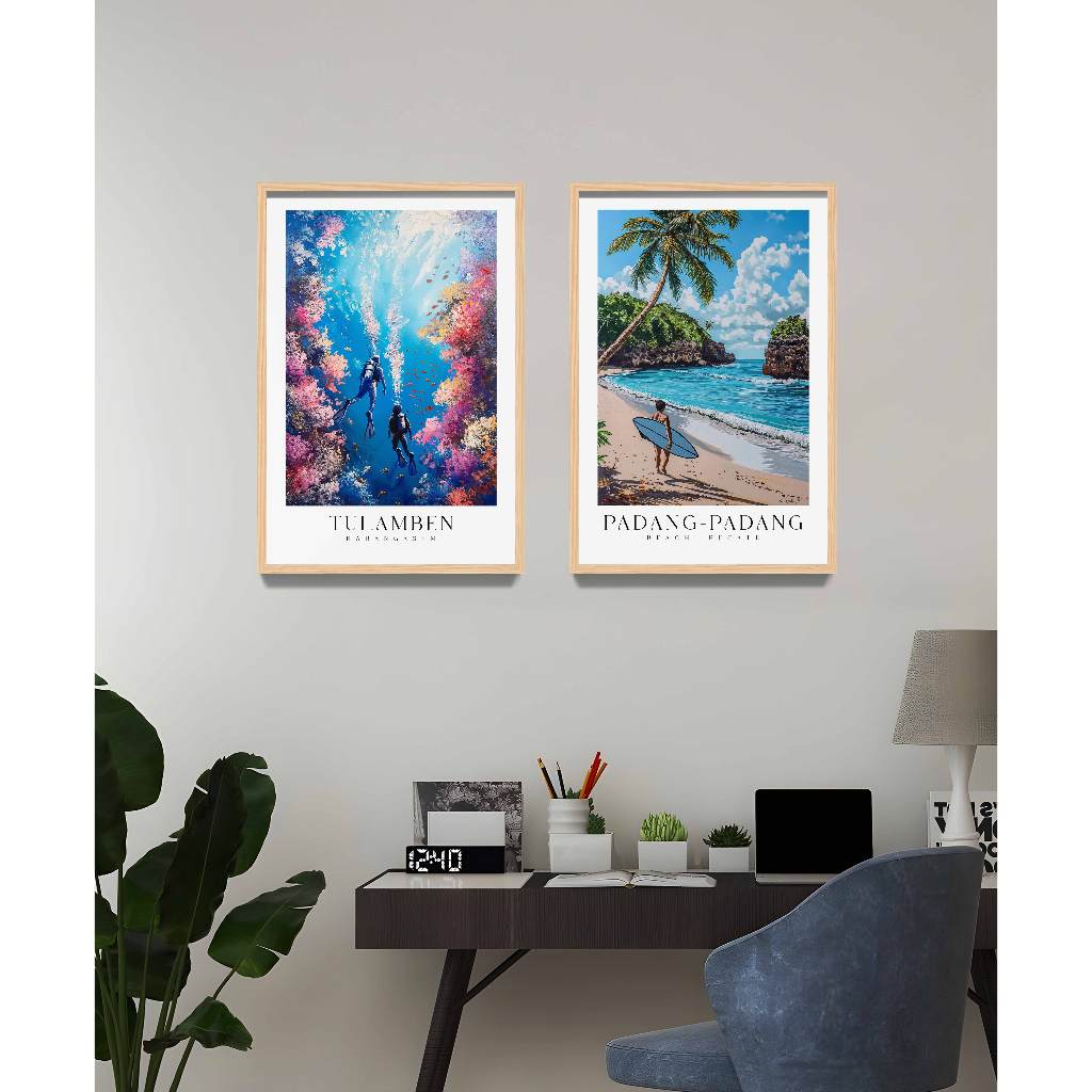 Bali Art Print Stunning Tourist Spots for Wall Decoration, Lukisan Objek Wisata bali, Bali City Attraction Wall Art Incl