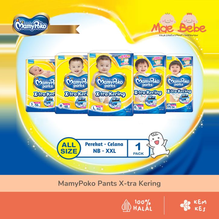 Popok perakat MamyPoko Pants X-tra Kering Popok Sekali Pakai Tipe Perekat & Celana NB S M L XL XXL