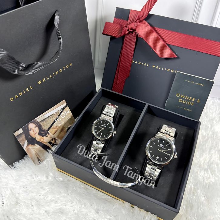 GROSIR Garansi 2 Tahun Paket Fullset Jam Tangan Couple Wanita / Pria Rantai Iconic Tanggal Aktif Terlaris