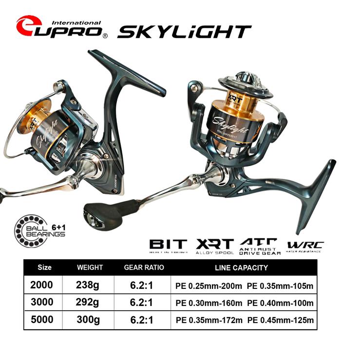 EUPRO Reel Pancing Spinning SKYLIGHT 6+1BB 2000 - 5000 Power Handle Saltwater Game Cocok Untuk