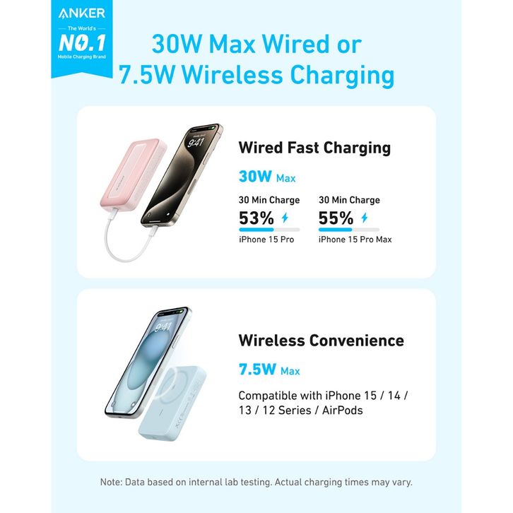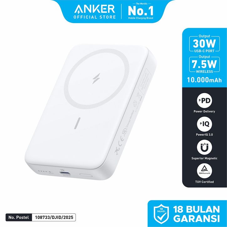 TERLAKU Anker Zolo Magnetic Power Bank Compact 10,000mAh Wireless Portable Charger with 30W Max Fast Charging,