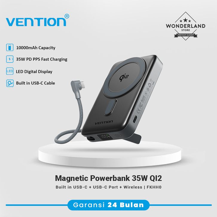 TERLARIS Vention Dash Series Qi2 Powerbank 10000mAh 35W PD PPS Wireless Magsafe Magnetic Built USB-C Cable +