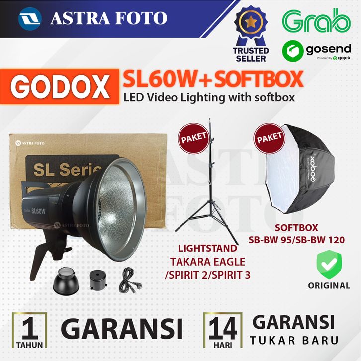 GODOX SL-60W VIDEO LED BOWENS MOUNT SL60W LAMPU STUDIO - GODOX SL 60 W - GODOX SL60 W Paket Lightstand & Softbox