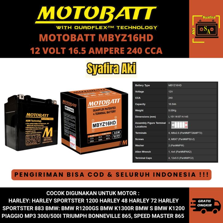 Motobatt Quadflex MBYZ16HD - 16.5Ah ORIGINAL