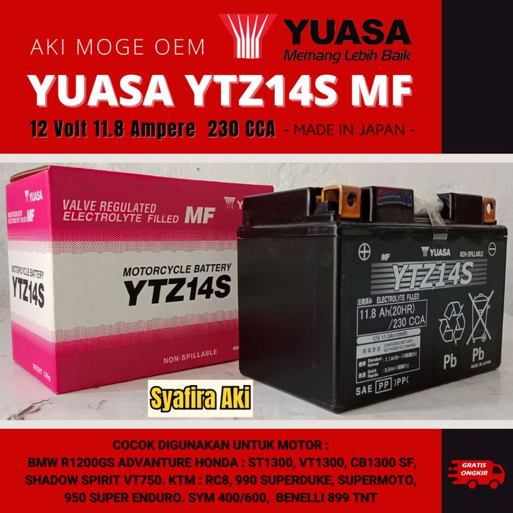 AKI MOTOR HONDA SHADOW,BENELLI 899 TNT,YAMAHA T MAX YUASA YTZ14S 11 AMPER