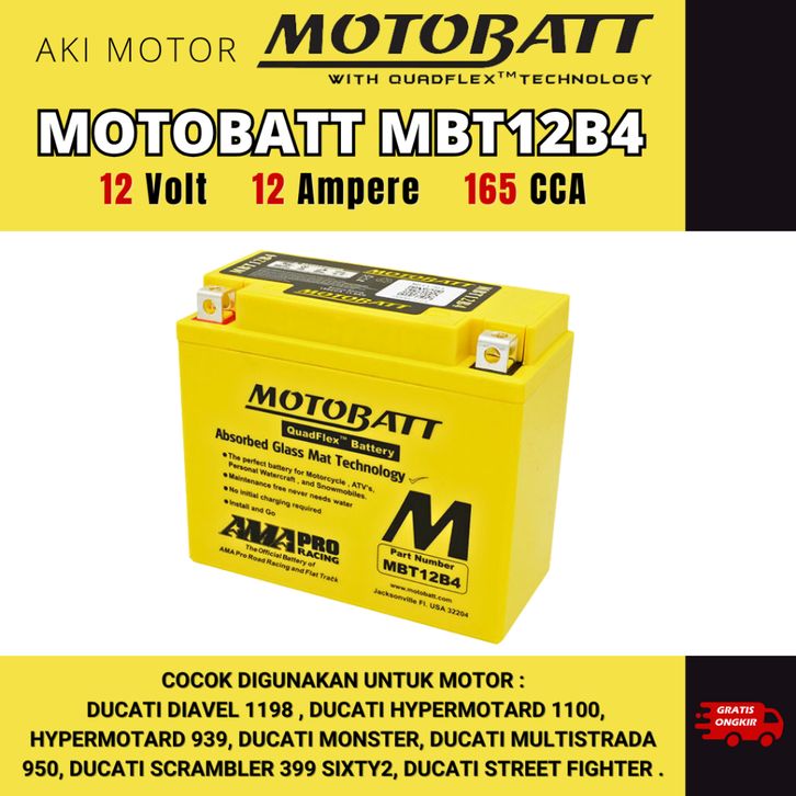 AKI MOTOR DUCATI MOSTER, YAMAHA FZ6, MOTOBATT MBT12B4 12AMPER