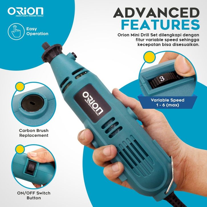 TERLARIS MESIN BOR TANGAN MINI GRINDER SET ORION MG-130B-9