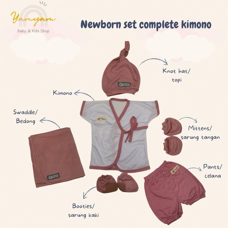 bedong bayi jumbo Newborn Set Complete Kimono Bedong Kimono Celana Sarung Tangan Sarung Kaki Topi Paket Lahiran Lengkap