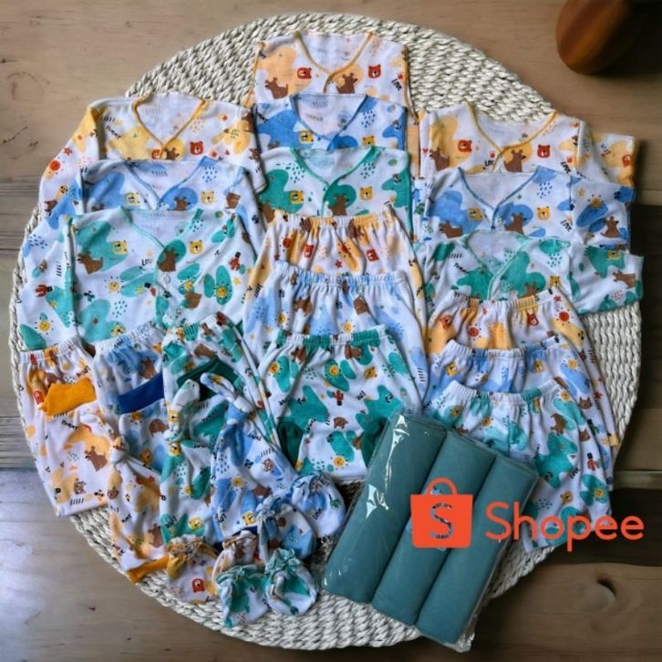 bedong bayi jumbo Paket Hemat 36 Pcs Baju Bayi Newborn Dan Bedong Motif Polos Karakter Usia 0-3 Bulan