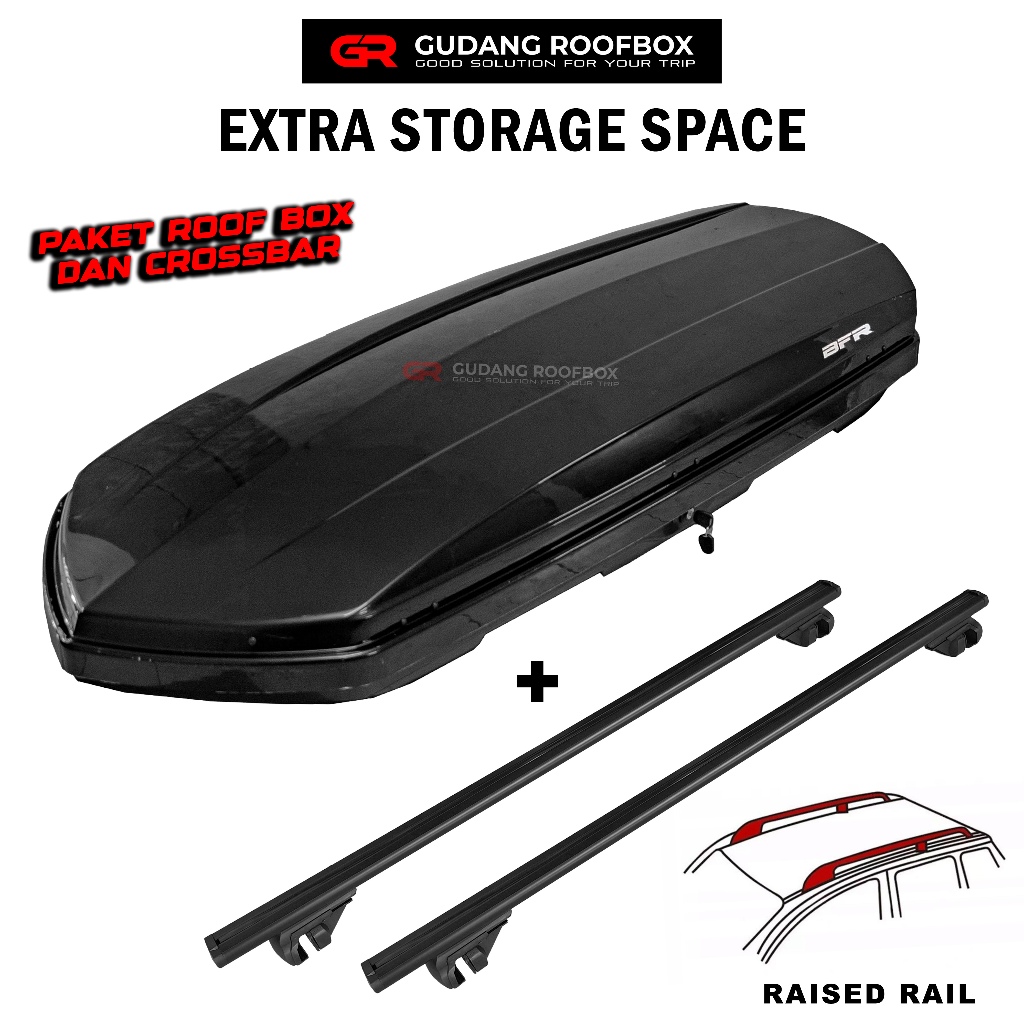 Paket Roof Box Roofbox dan Crossbar Crossbar Mobil Universal Jepit Roof Rail Raised Rail