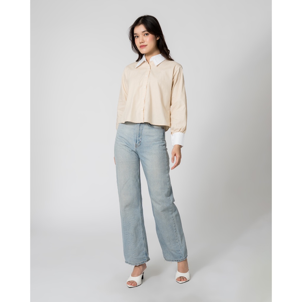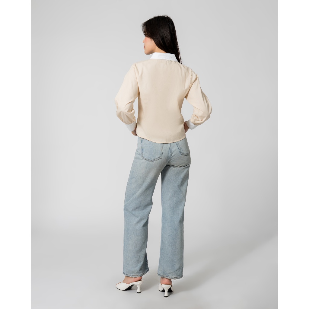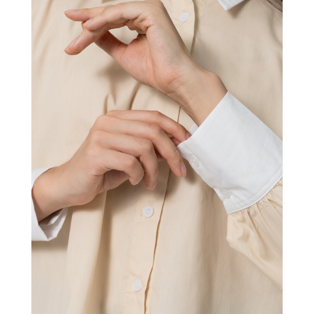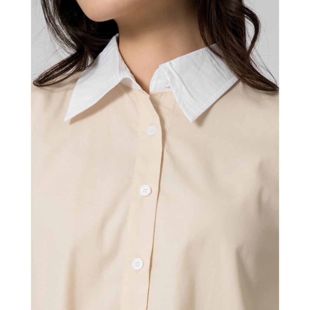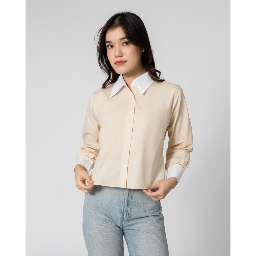 MALOVA TALIZA KEMEJA WANITA TWO TONE BASIC SHIRT ATASAN WANITA LENGAN PANJANG BAHAN KATUN