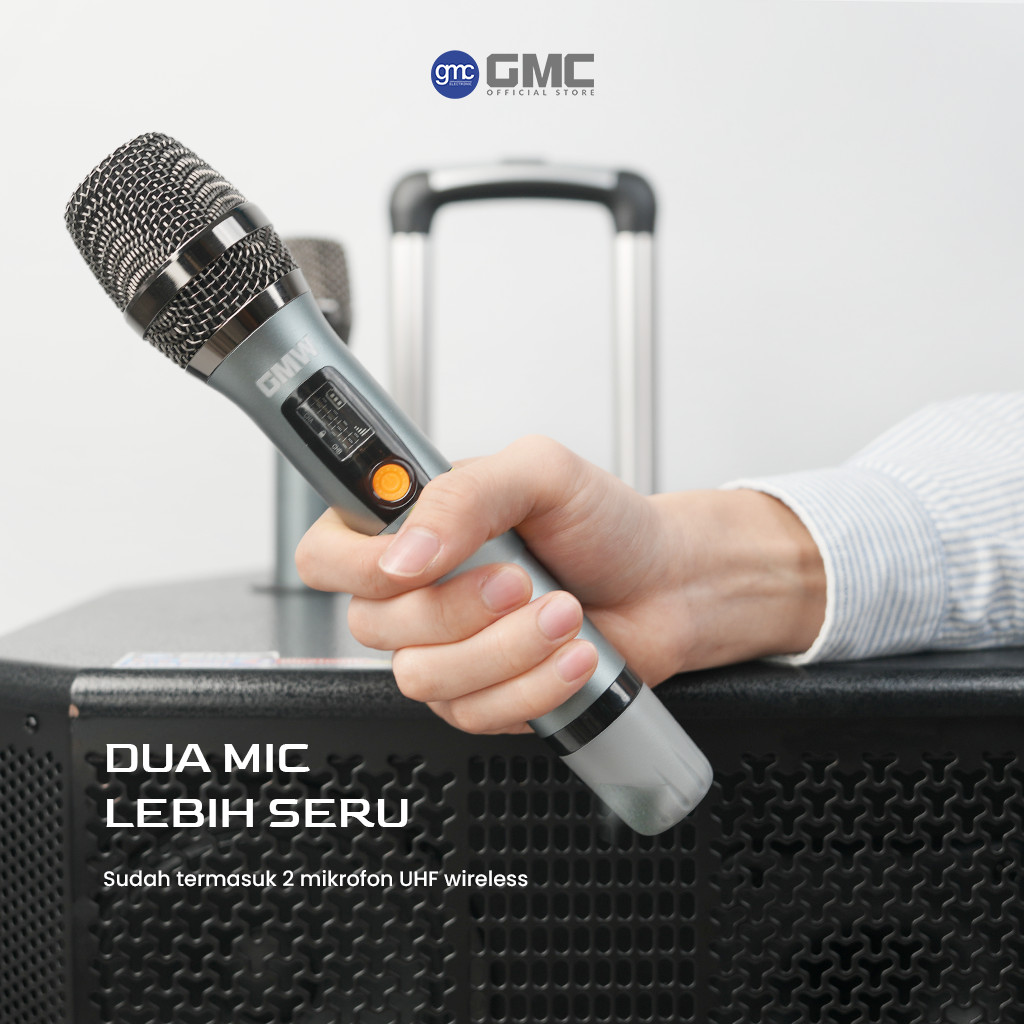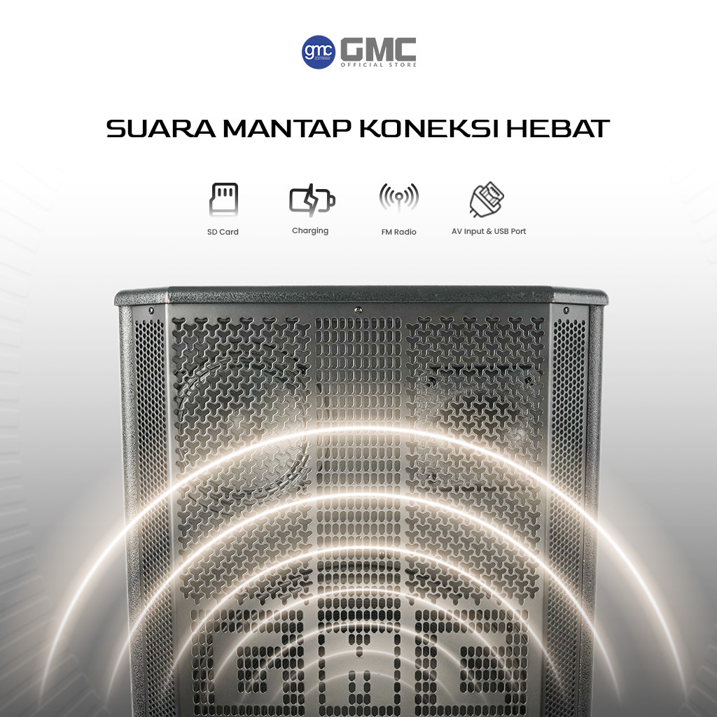 GMC Speaker 899U – Professional Line Bluetooth Karaoke Speaker 15" – 350W, USB, SD, AV In, FM Radio, 2 UHF Wireless Mic,
