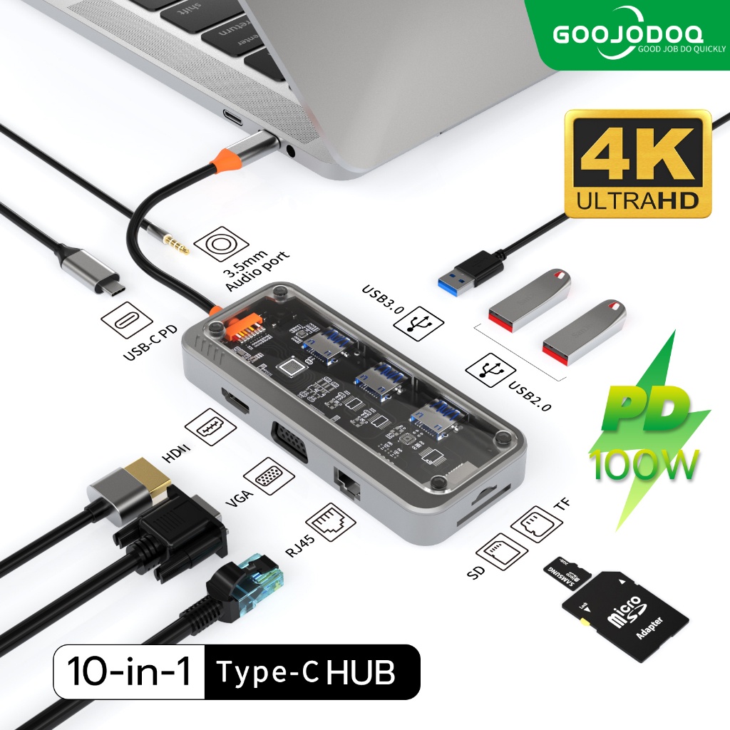 [Mall] GOOJODOQ 10 IN 1 TYPE-C TRANSPARENT HUB LAPTOP DOCKING STATION