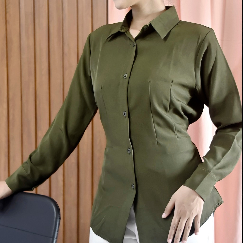Elsira Blouse Kemaja Wanita Kerja Kantoran Cewek Kuliah Kekinian Atasan Lengan Panjang Simpel Elegan