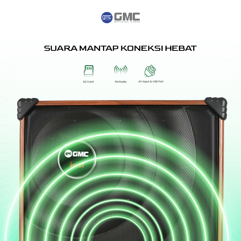 GMC Speaker 883N – Bluetooth Karaoke Speaker 15" – 160W, USB, SD, AV In, FM Radio, Karaoke Jack