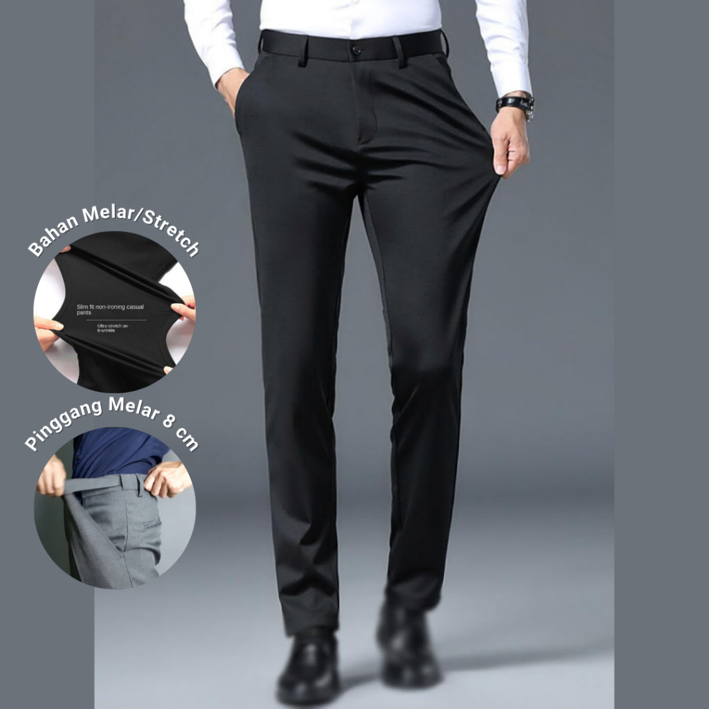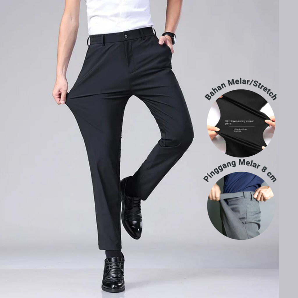 Bincoorank Celana Formal Slim Fit Bahan Melar/Stretch Pria, Pinggang Melar