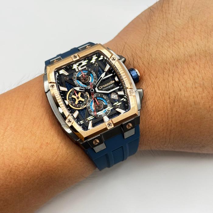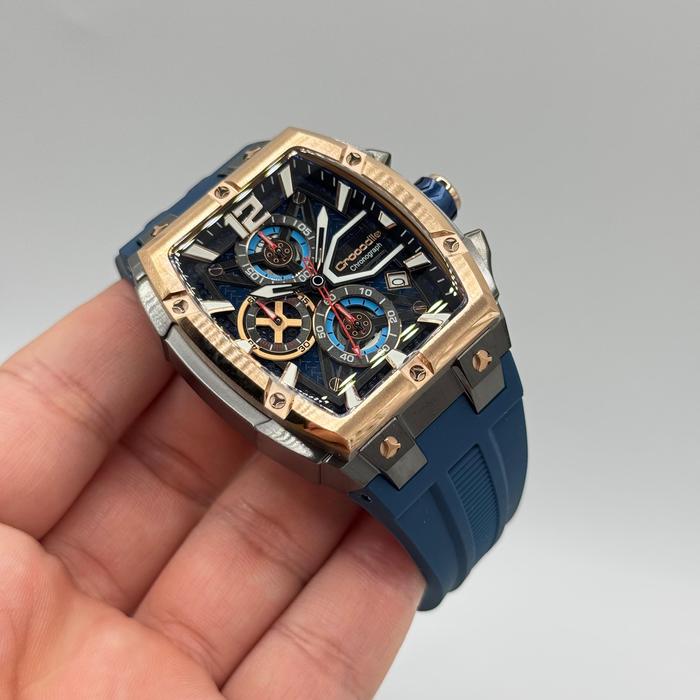 Crocodile CM-051D34C Jam Tangan Pria Analog Rubber Chronograph CM051 Original Biru Blue