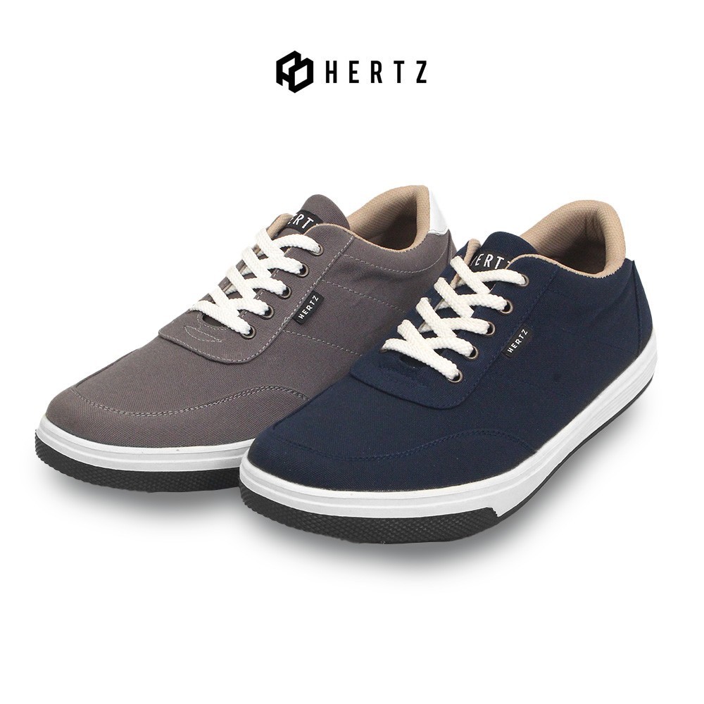 Hertz - Sepatu Sneakers Pria H 4055 Brand Hertz Sepatu Kets Casual Hangout Kuliah Kerja Kanvas Warna Abu