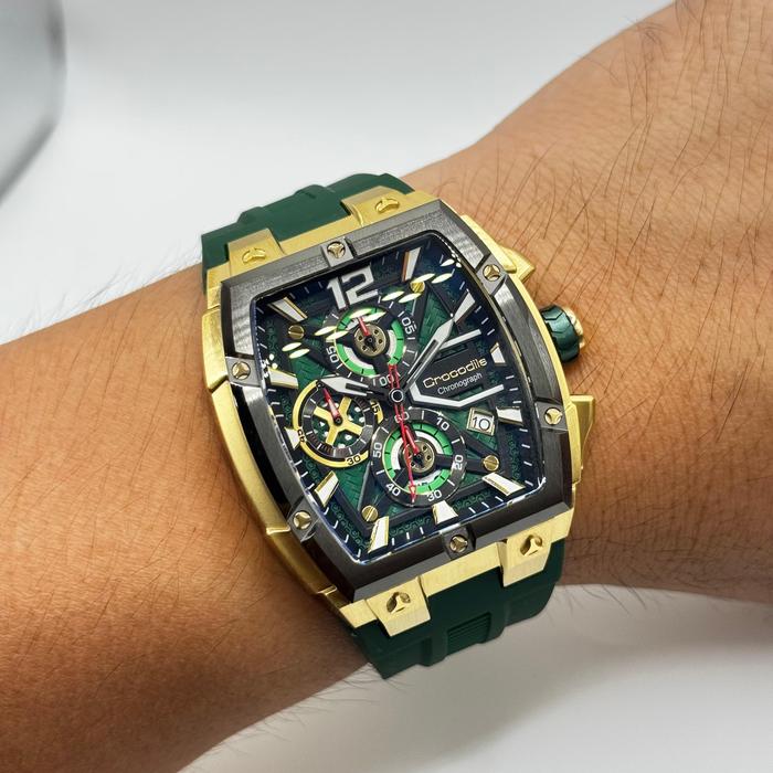 Crocodile CM-051C34D Jam Tangan Pria Analog Rubber Chronograph CM051 Original Hijau Green