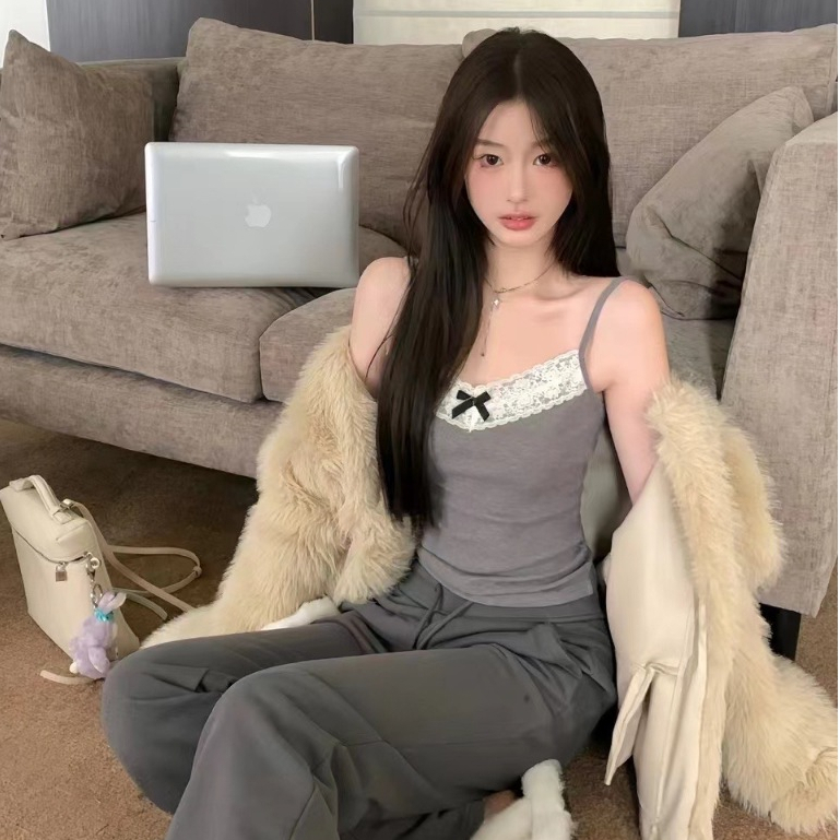 Tank Top Wanita Busa Bra Dalaman Renda Pita Import Korean Style