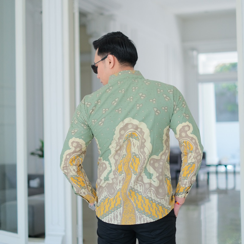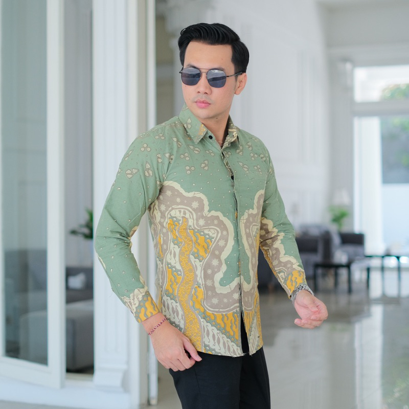 Keris Sage Kemeja batik pria lengan panjang full furing katun Slim Fit Warna Hijau Sage