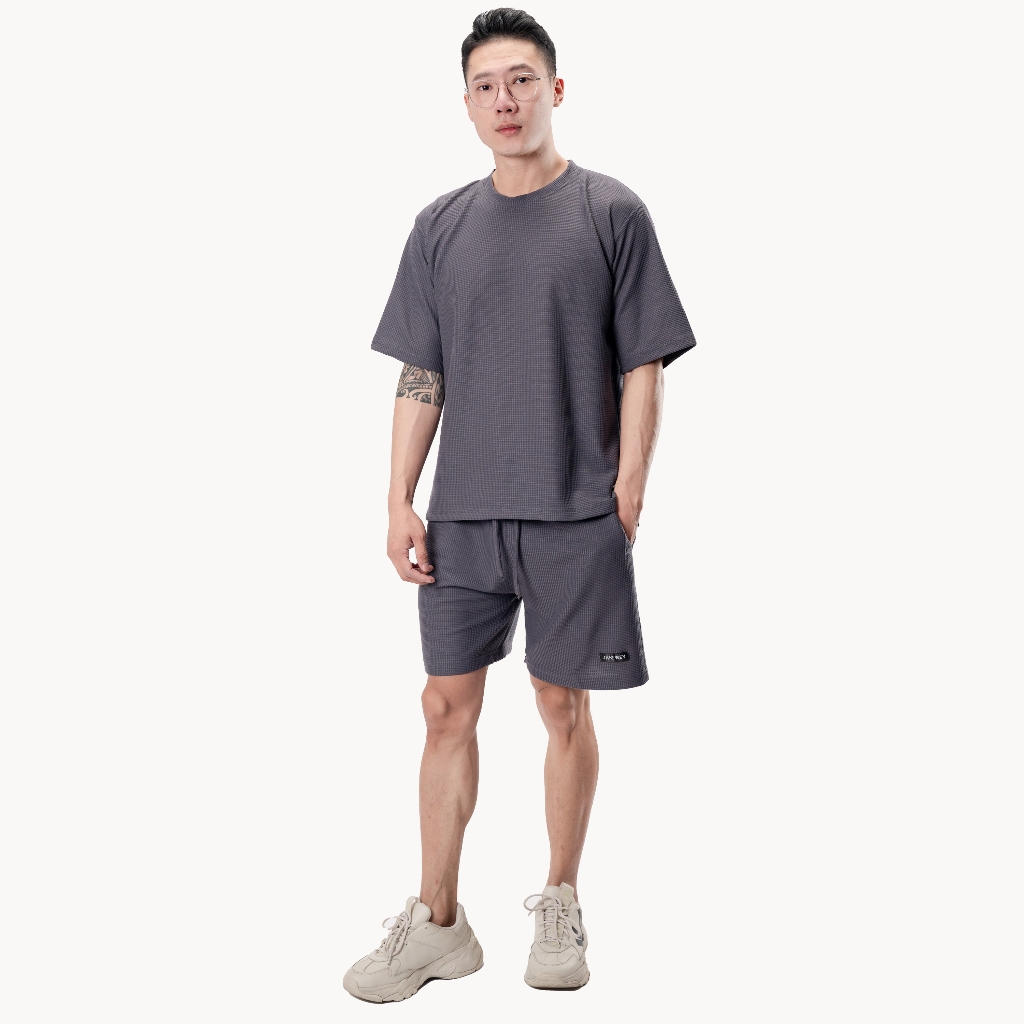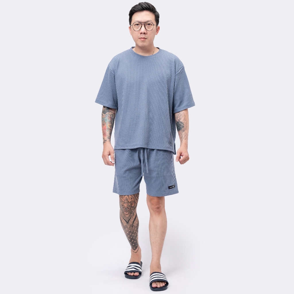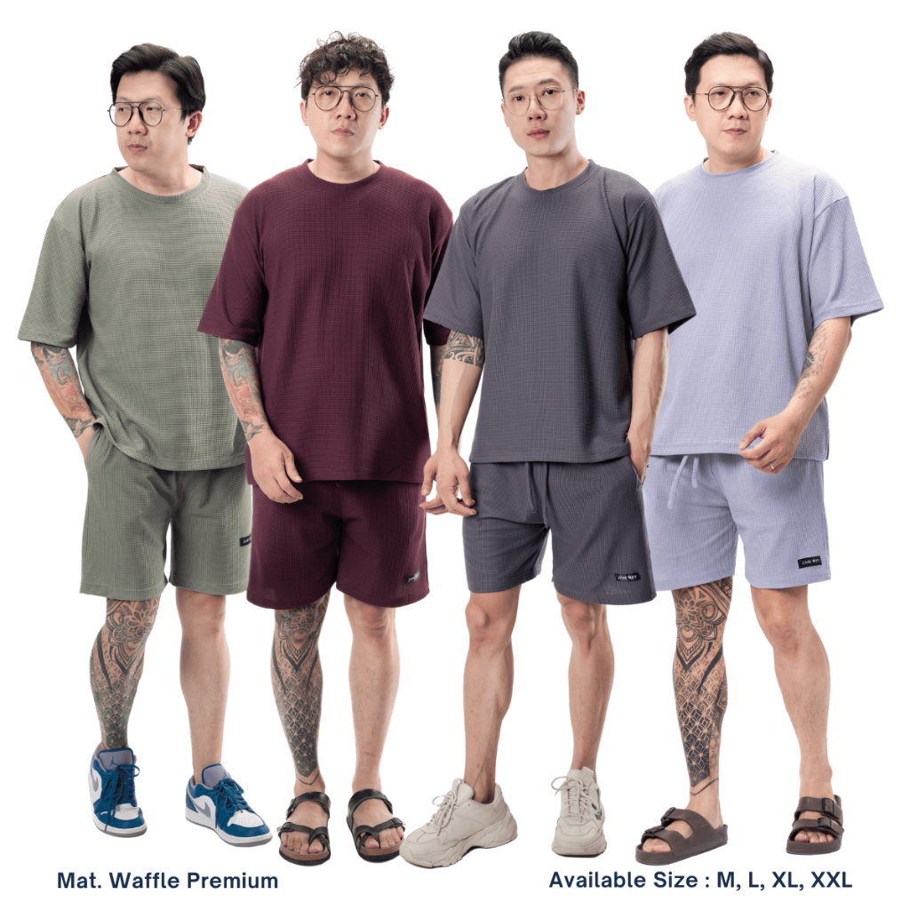 Jane Frey Clothing 8174 Oversized Set Tshirt Pria M-2XL Waffle