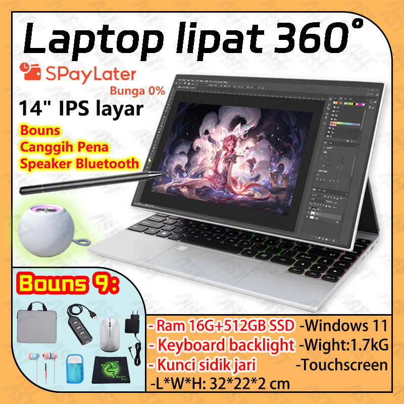 Spaylater 0 PERSEN - Laptop touchscreen 2in1 lipat 360° 14 inch Intel Ram16G+512GB SSD Garansi 1 Tahun