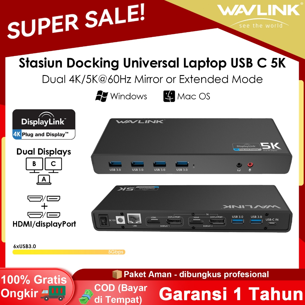 [Mall] USB C 5K LAPTOP UNIVERSAL DOCKING STATION ULTRA HD MULTIPLE DISPLAY DOCK WITH 2 × HDMI AND DISPLAYPORT, GIGABIT ETHERNET