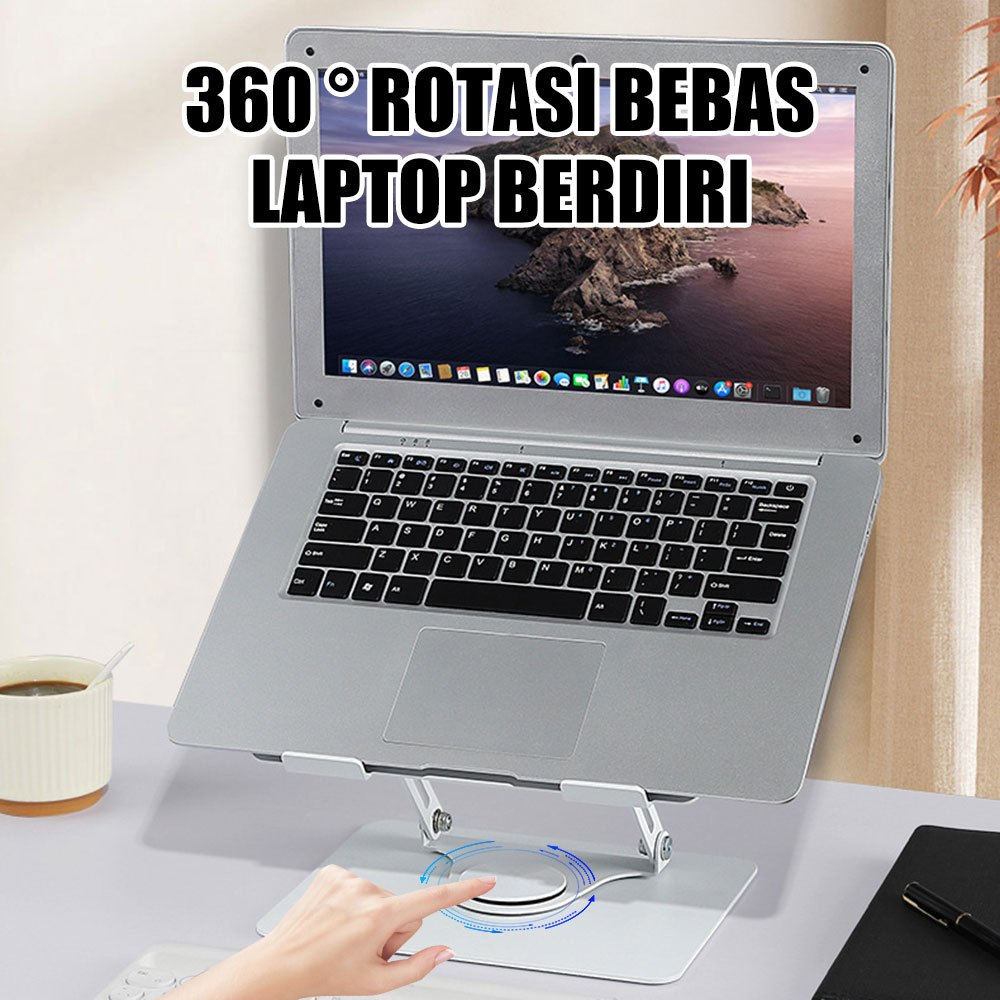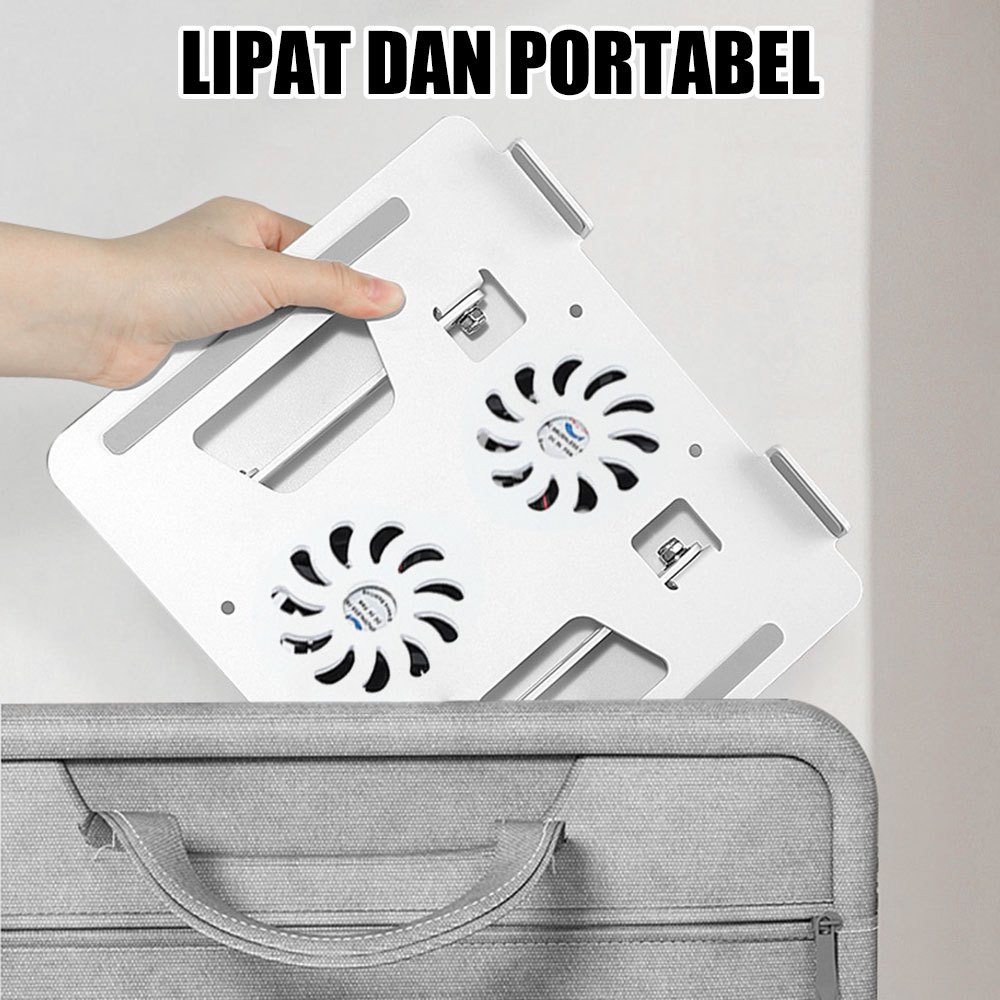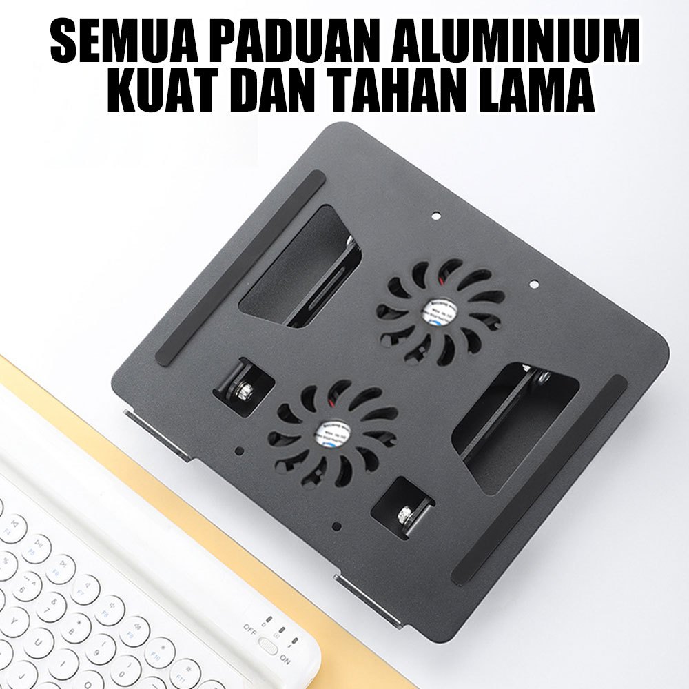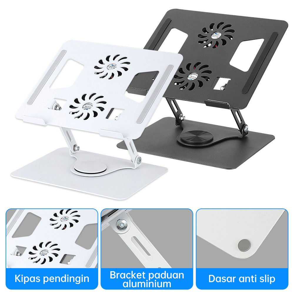 [Mall] STAND LAPTOP PENDINGIN 360° ROTASI | ALUMINIUM RINGAN + 2 KIPAS | PORTABEL OUTDOOR & OFFICE