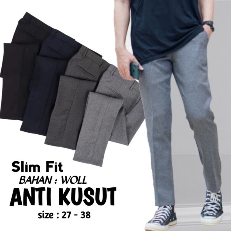 CELANA KAIN FORMAL CELANA KAIN SLIMFIT PRIA FORMAL CELANA SLIMFIT KANTOR CELANA KAIN HITAM CELANA BAHAN KANTOR CELANA