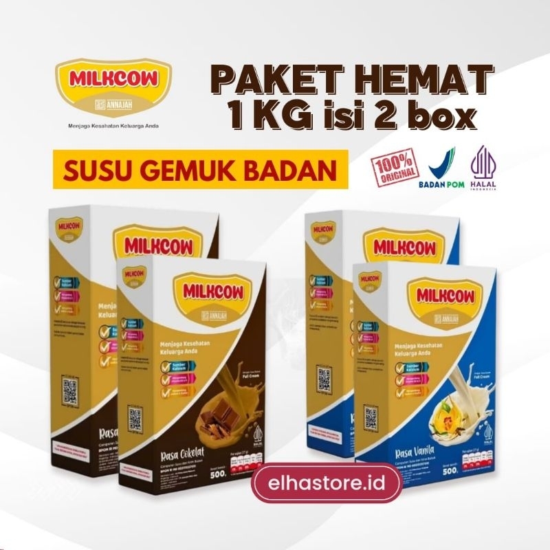 Paket Hemat 2 Box MILKCOW Susu Penggemuk Penambah Berat Badan Nafsu Makan Anak dan Dewasa 1 KG