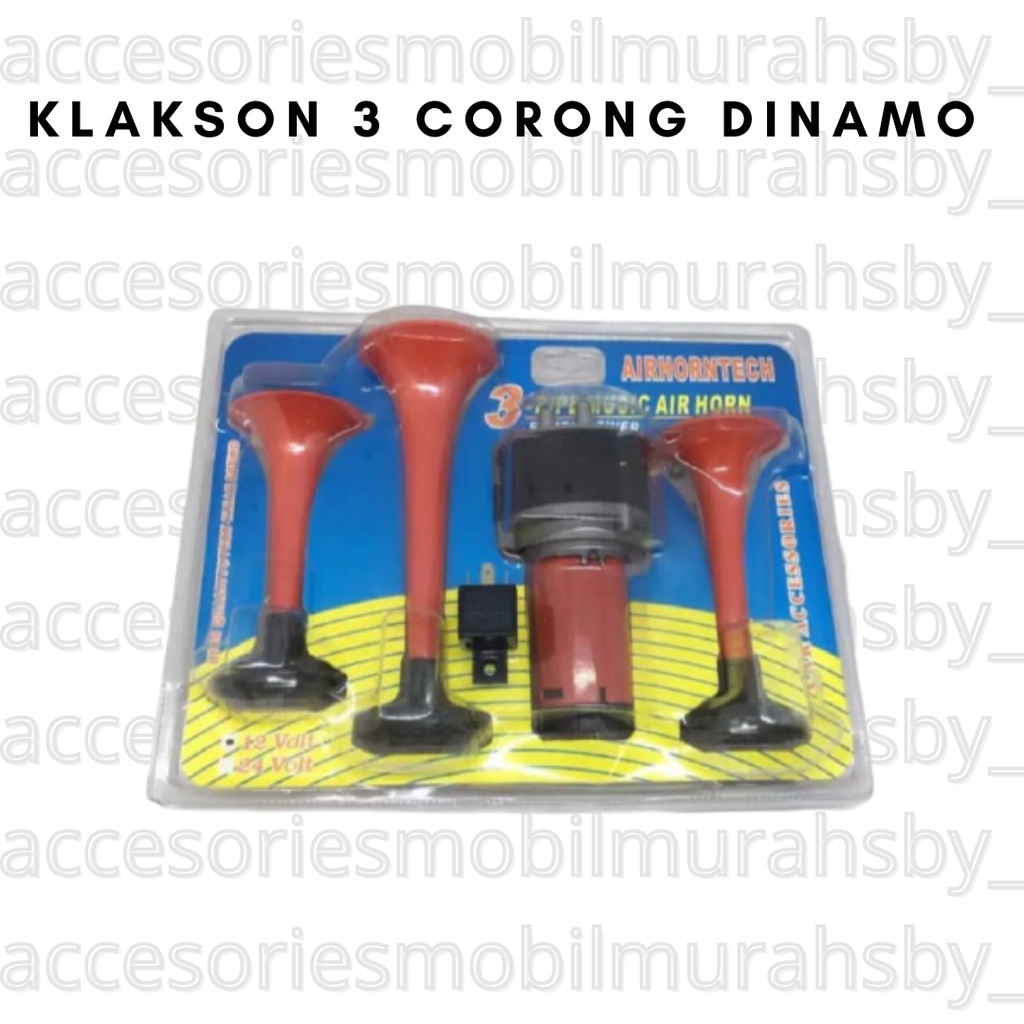 Klakson Telolet 3in1 Terompet 3 Corong Dinamo + Relay Fungsi Ke Motor dan Mobil 12volt dan 24volt