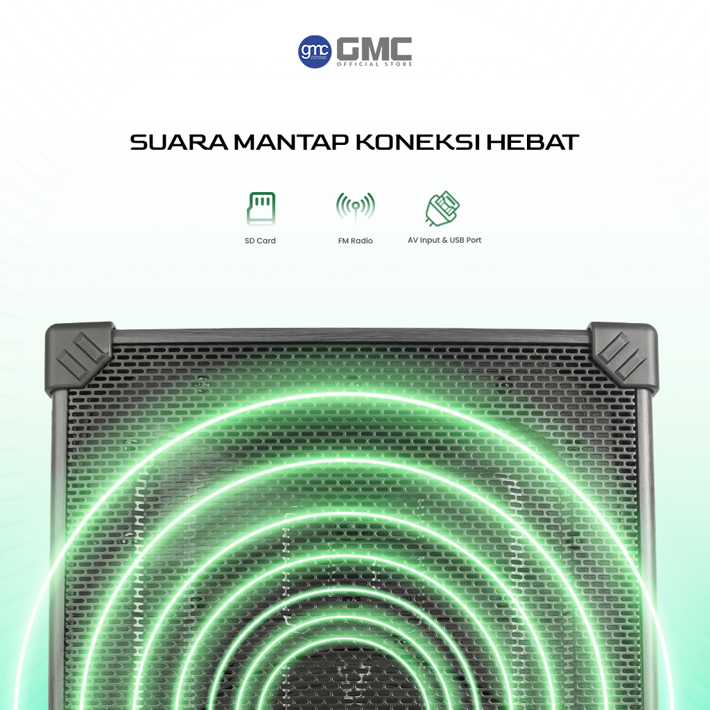 GMC Speaker 883M – Bluetooth Karaoke Speaker 12" – 130W, USB, SD, AV In, FM Radio, Karaoke Jack